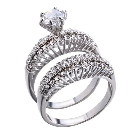 Luxurious romantic shiny alloy plating double ring