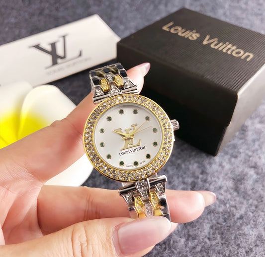 Elegant Diamond Bezel Statement LV Watch in perium quality stainless waterproof