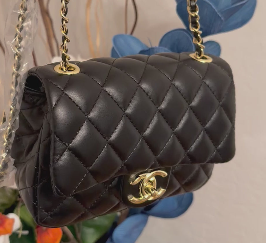 Chanel small black sling bag | Premium Quilted Design | Gold CC Lock | Luxury Quality