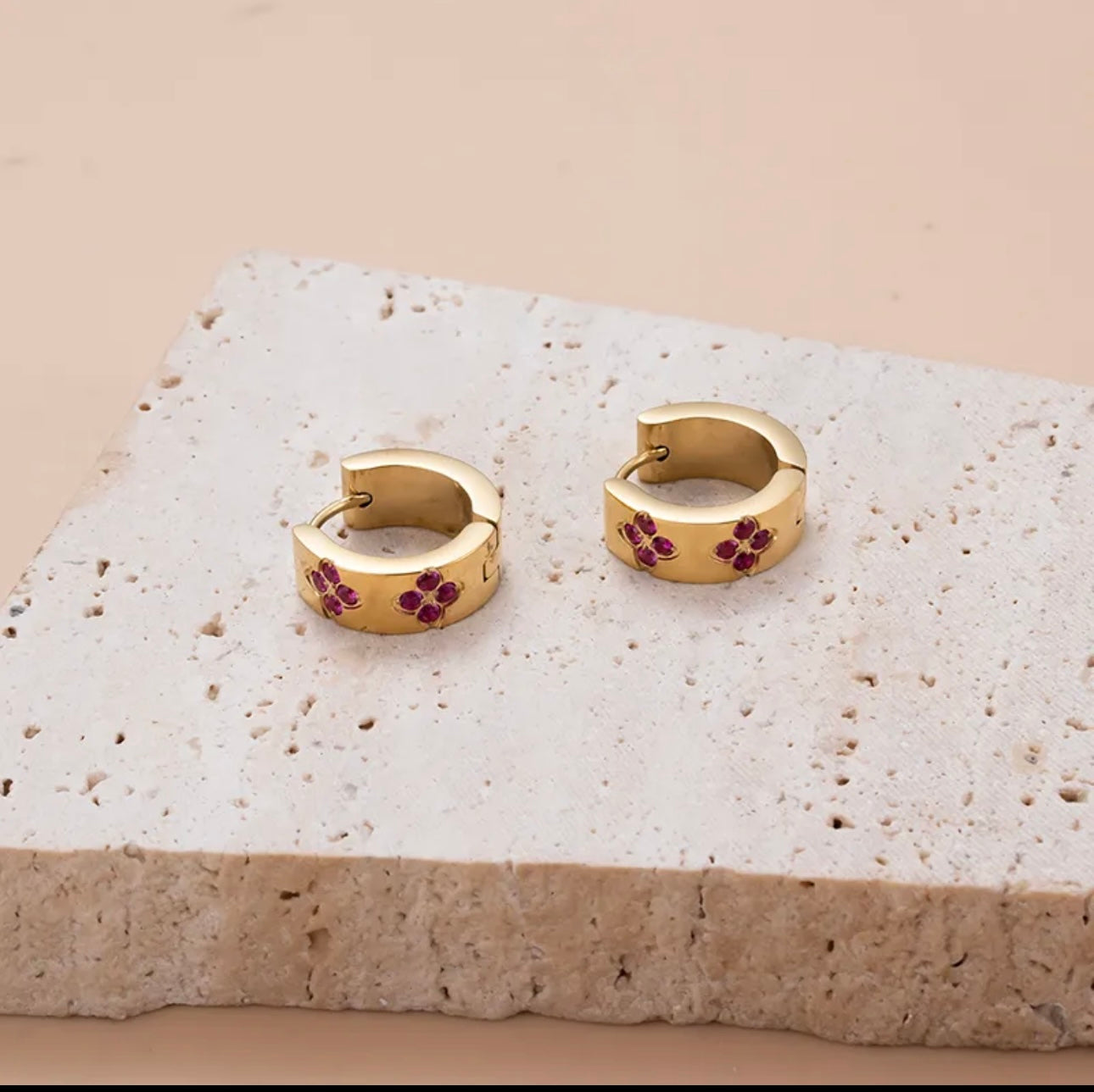 GAdd a touch of elegance to your outfit with our Glam round pink flower earrings. Made with high-quality materials, these earrings are lightweight and comfortable to wear. The intricate flower design adds a feminine touch. Perfect for any occasion, these earrings will make you stand out in style.