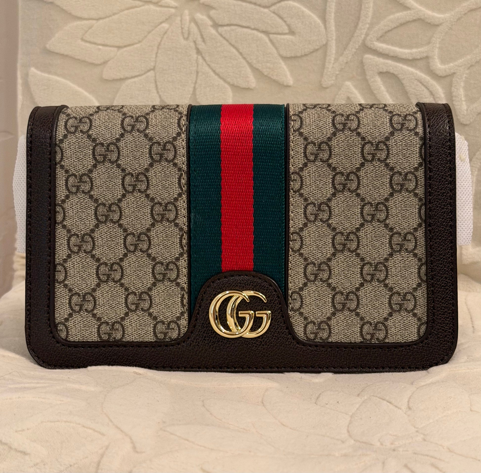 Introducing the Gucci bag, the epitome of luxury and style. With its versatile design as both a clutch and sling, this bag offers the perfect blend of fashion and functionality. Crafted with a sleek and trendy finish, this bag is a must-have for any fashion-forward individual.